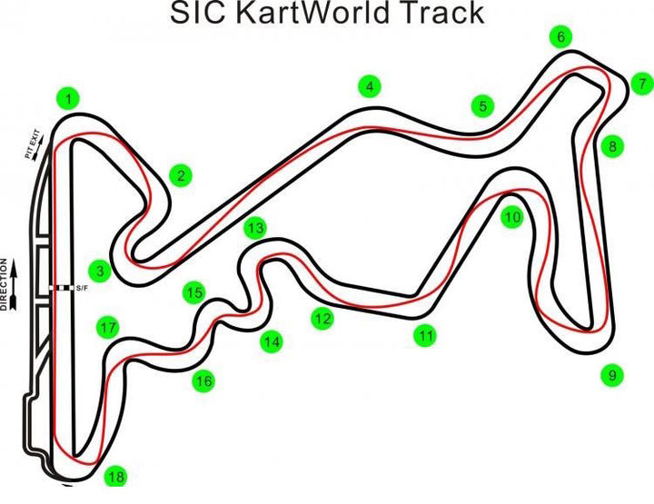 因此如果使用X30,Rotax Max Senior類的發(fā)動(dòng)機(jī),在圈速可以做到53s~54s左右后,再想提升圈速一般都是靠發(fā)動(dòng)機(jī)了。另外也因這條賽道的高速特性,卡丁車可以在這條賽道利用尾流效應(yīng)來(lái)追近并實(shí)現(xiàn)超越。因此在這條賽道想要超越后迅速擺脫對(duì)手顯得比較困難,但也相對(duì)的,走理論上的最佳賽車線,和較窄的路線并不會(huì)影響圈速。所以比賽時(shí)看起來(lái)會(huì)異常激烈。